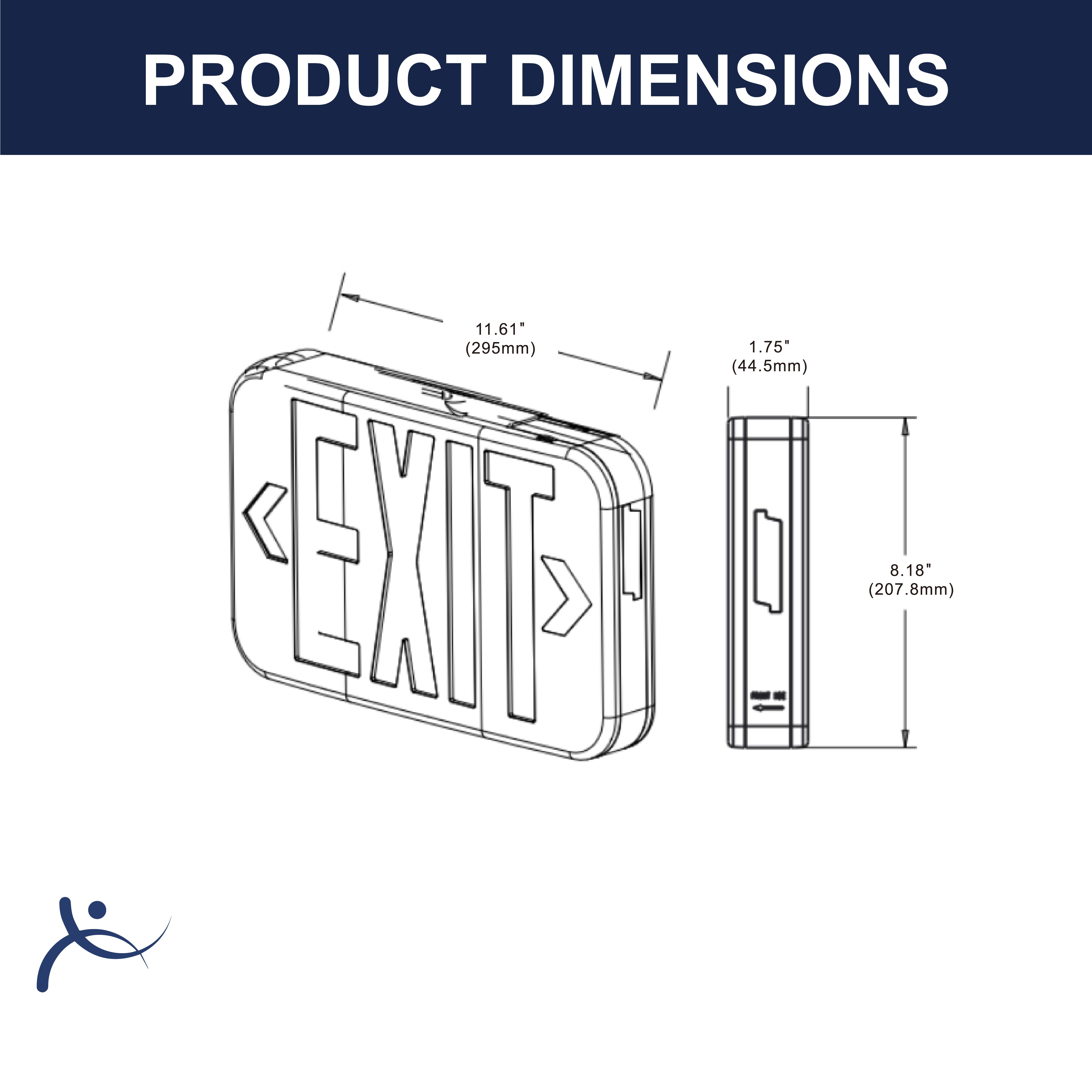 Industrial grade polycarbonate housing with dual voltage 100-120V and 220-277V. Field selectable for red or green LEDs. Nickel cadmium battery allow for min. 90 mins emergency illumination. Contractor friendly with "ON" LED for charge indicator as well as test switch. Option for Left and Right arrow knock out.