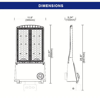 One of Marathon Lighting newest performance grade Area Light family. With two sizes of output similar to 400W Metal Halide and 1000W Metal Halide respectively, these two fixtures are truly in a class of its own. Designed with minimizing wind load and providing a slim modern profile, the ML-AL-7X Series is a workhorse. With best in class lumens efficiency and spec grade lighting distributions, this workhorse will last in the field. 3000K/4000K/5000K color temperature and wattage selectability all in one. Dark bronze, UL Listed, 5-year limited warranty