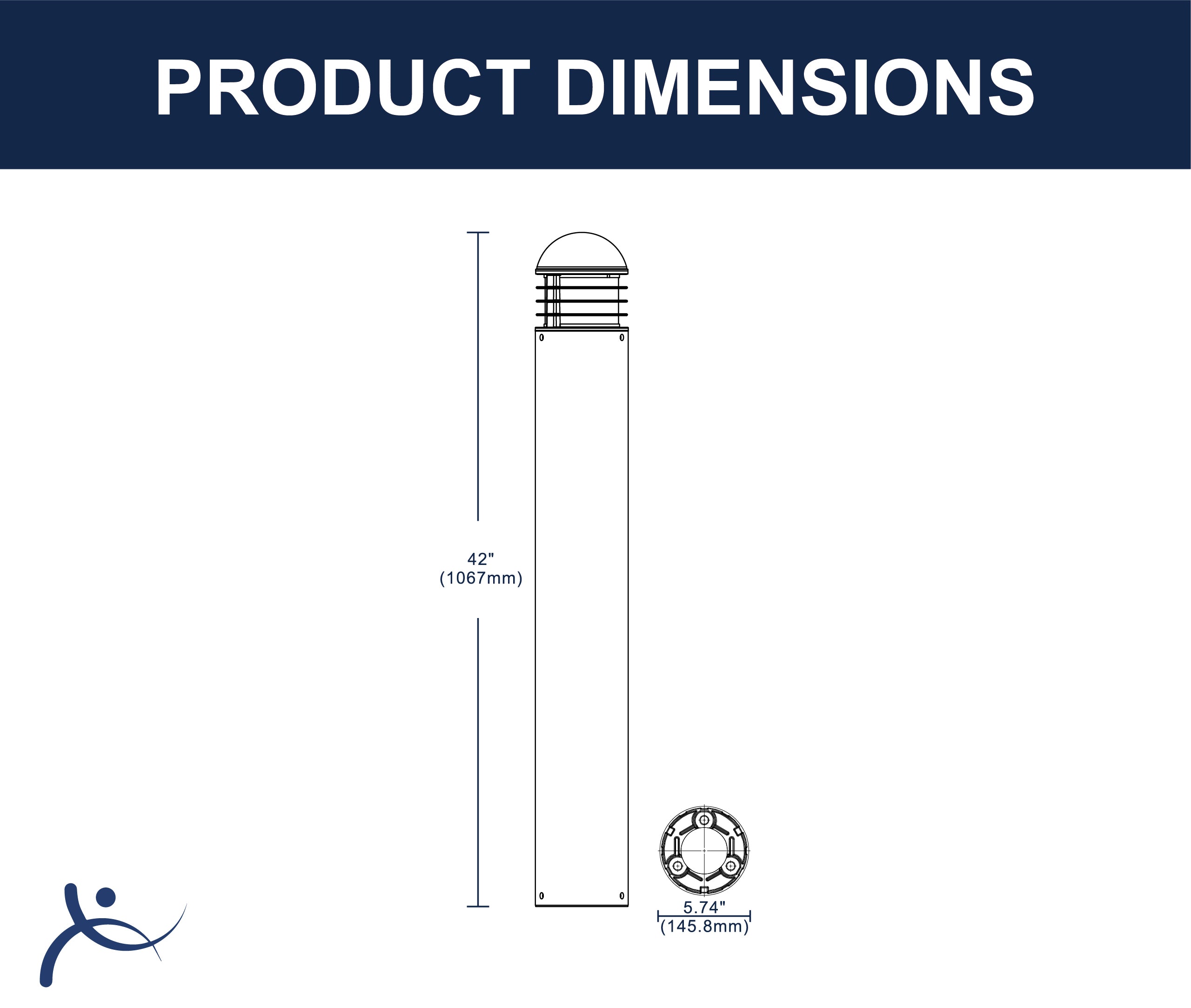 Replaces 150-watt high intensity discharge (HID). 30 Watt LED Bollard Light with Baffle. 30W/20W/10W with max. 1252 delivered lumens. 3000K/4000K/5000K, dark bronze, DLC and UL Listed, 5-year limited warranty